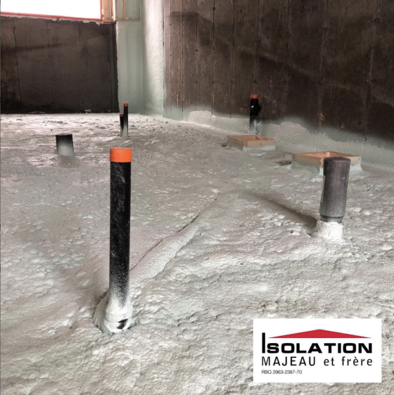 Isolation de la sous dalle de béton avec le polyuréthane giclé vous assure une protection contre le radon.
